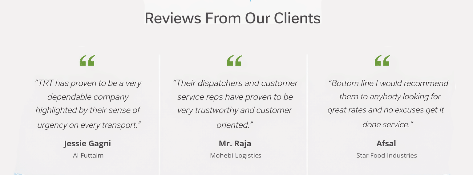 TRT is a well known transport company in Dubai that manages the movement of cargo via land destinations all over U.A.E. We are your full service logistics providers. Triangle refrigerated Transport Dubai develops comprehensive service plans tailored to meet your specific requirements.Triangle refrigerated transport Dubai objective is to exceed the expectations of our customers through total quality management.Our goal is to provide cost effective alternatives to help our customers to realize their goals.